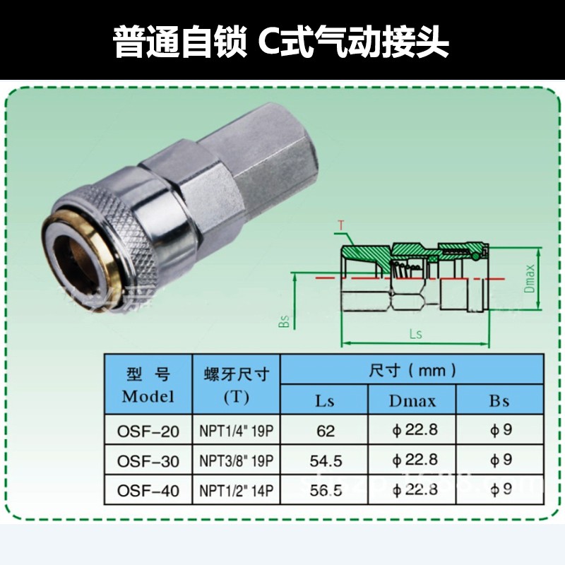 OSF20+OPF20 普通自鎖20內絲接頭 C式氣動接頭 氣動快速接頭