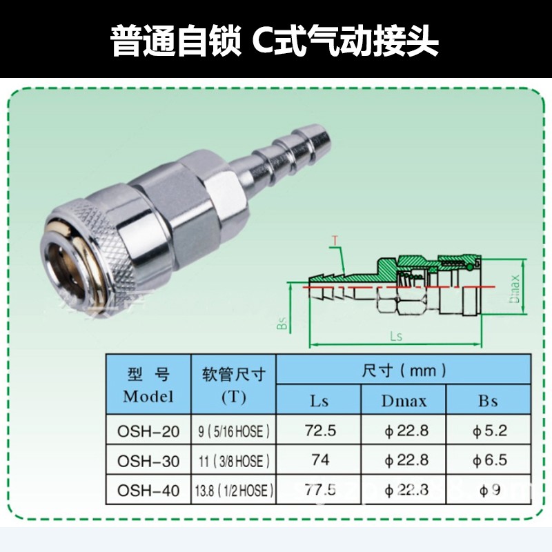OSH20 普通自鎖20長尾母接 C式氣動接頭 氣動快速接頭