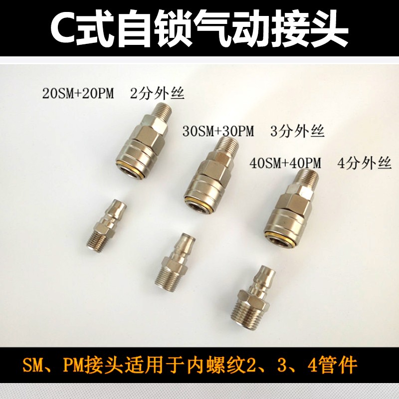 珍珠鎳自鎖BSM20/30/40氣動(dòng)快速接頭20外絲母接 PU管接頭 風(fēng)管接
