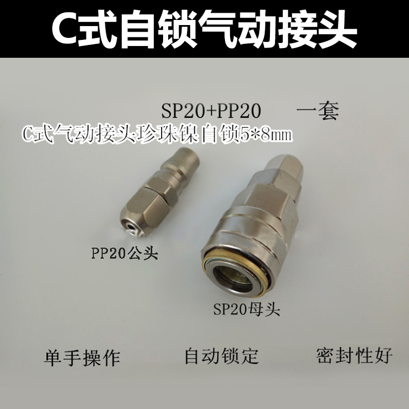 BSP20/30/40高檔自鎖式氣動快速接頭 5*8珍珠鎳自鎖 PU管接頭風管接