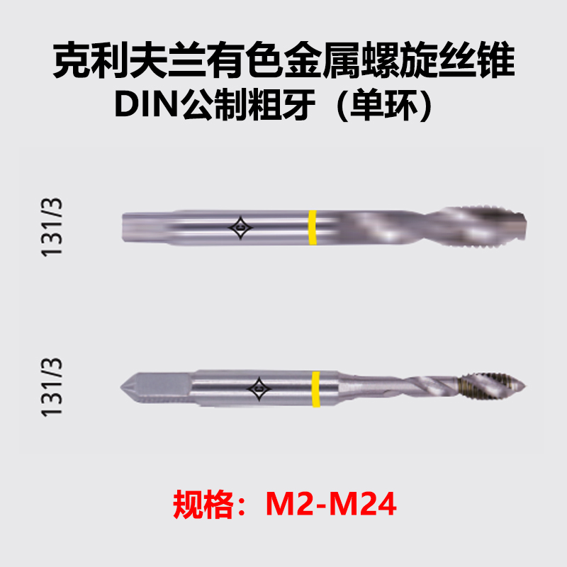 克利夫蘭有色金屬黃色單環螺旋絲錐M2-M24 DIN公制粗牙