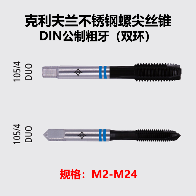 克利夫蘭不銹鋼藍色雙環螺尖絲錐M2-M24 DIN公制粗牙