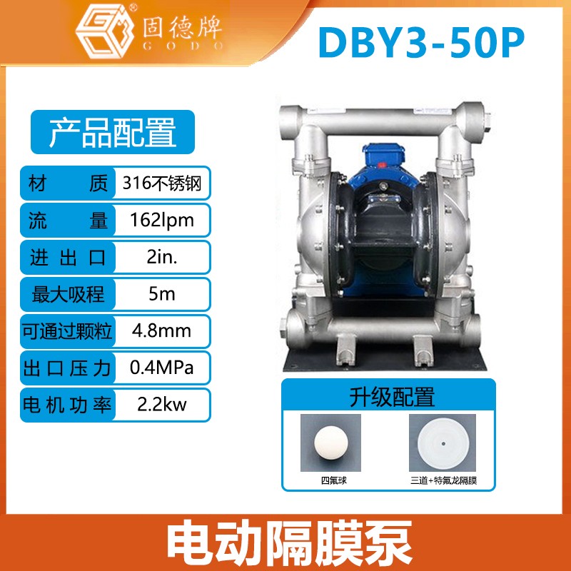 固德牌電動隔膜泵DBY3-50P不銹鋼系列自吸無堵塞隔膜水泵耐酸堿耐腐蝕