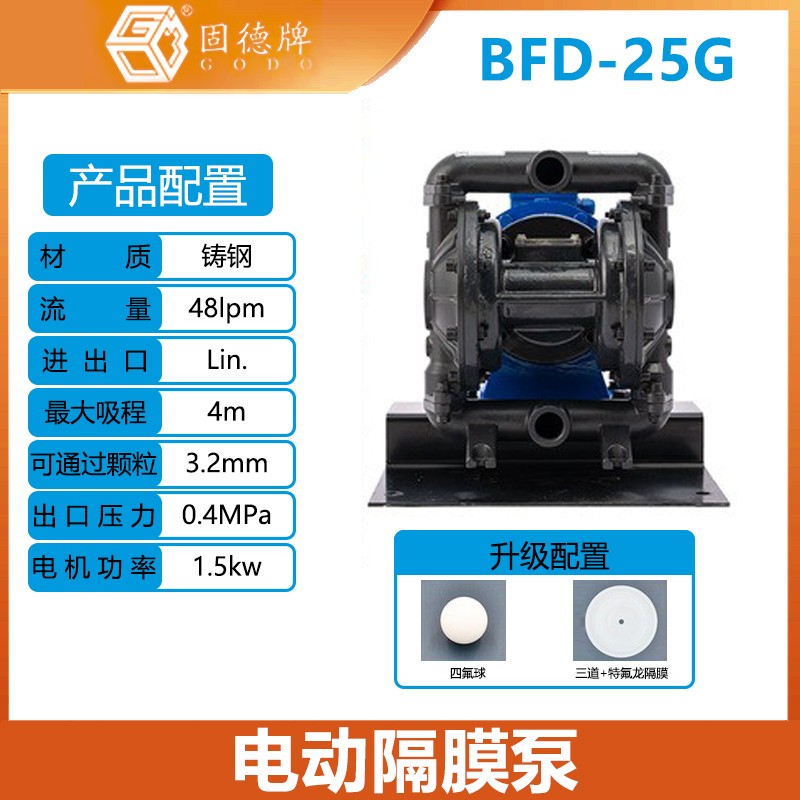 固德牌電動(dòng)隔膜泵BFD-25G鑄鋼高壓大功率污水膠水輸送泵