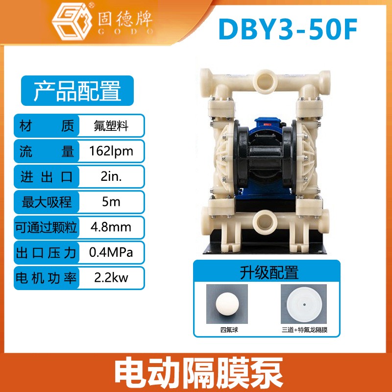 固德牌電動隔膜泵DBY3-50F全氟塑料耐腐蝕酸堿高流量水泵