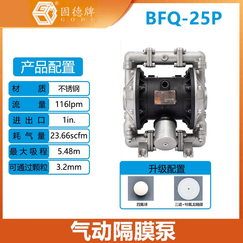 固德牌氣動隔膜泵BFQ-25P不銹鋼材質耐腐蝕膜片食品衛生級