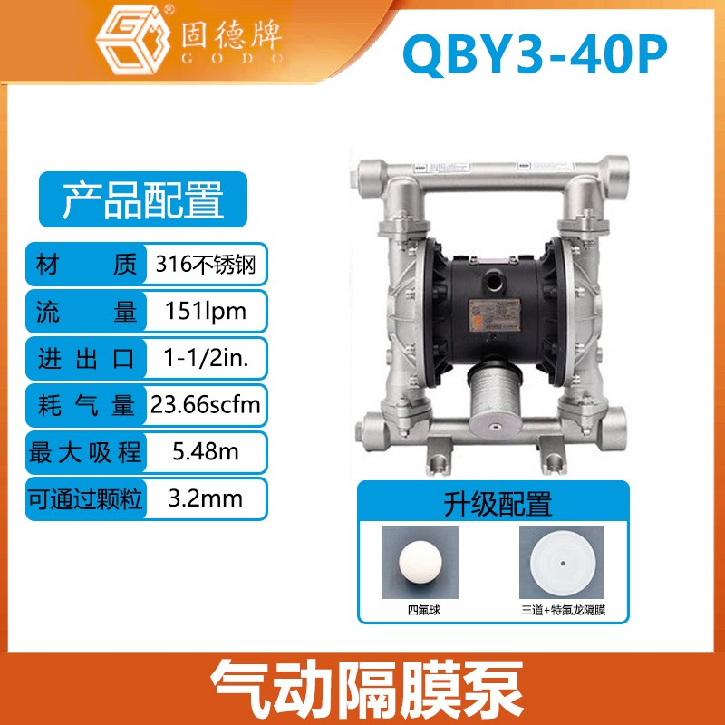 固德牌氣動隔膜泵QBY3-40P不銹鋼材質(zhì)耐腐蝕膜片食品衛(wèi)生級