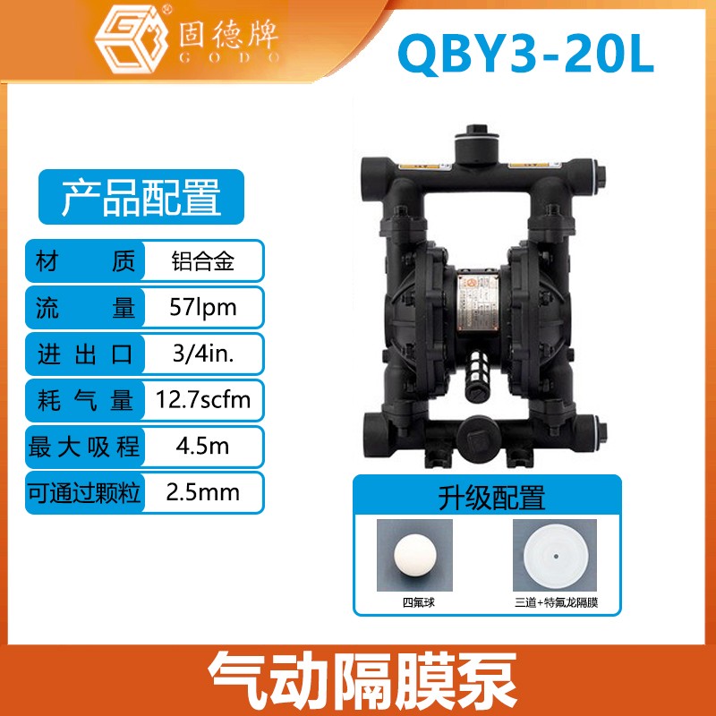 固德氣動隔膜泵QBY3-20L鋁合金系列耐腐蝕自吸防爆泵