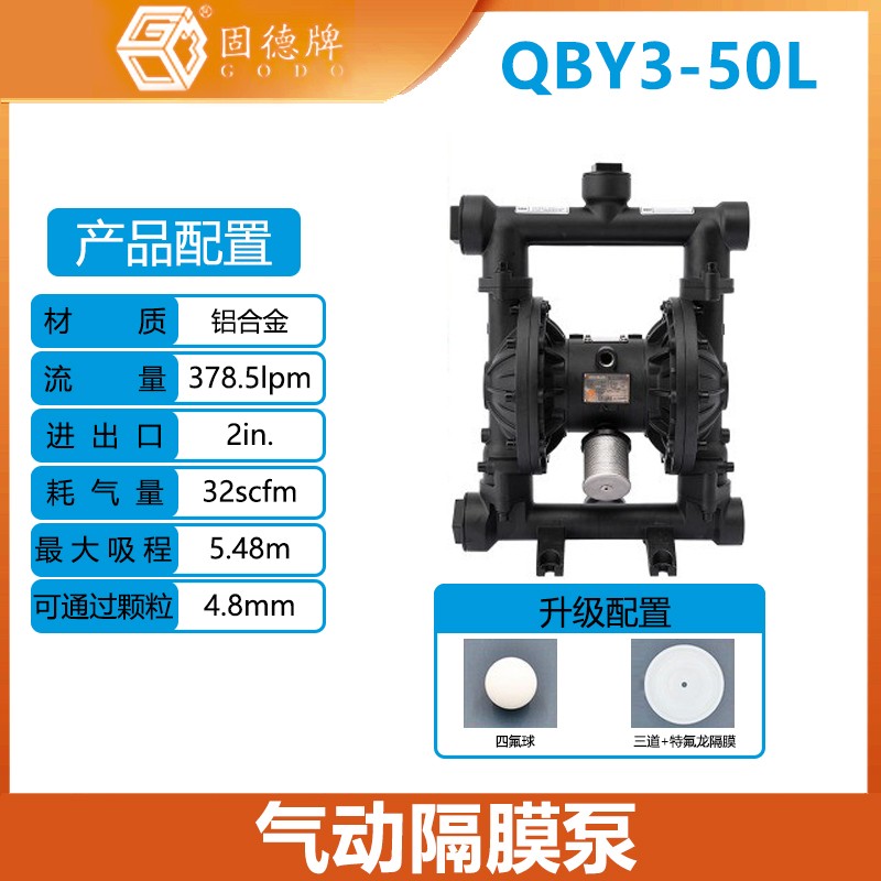 固德氣動隔膜泵QBY3-50L鋁合金系列耐腐蝕自吸防爆泵