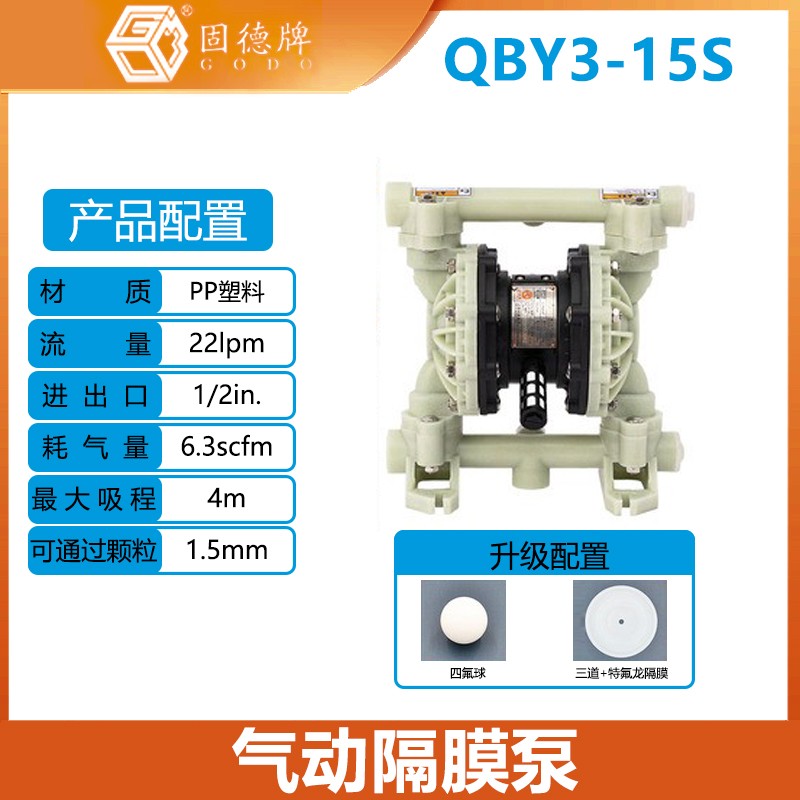 固德牌隔膜泵氣動QBY3-15S塑料PP加特氟龍膜片排污防爆泵