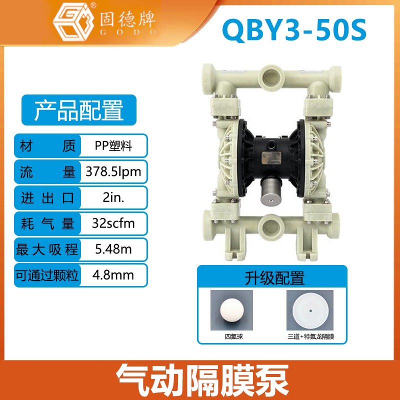 固德牌 氣動隔膜QBY3-50S塑料PP加特氟龍膜片排污防爆泵