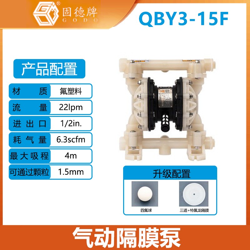 氣動隔膜泵QBY3-15F系列全氟塑料材質(zhì)強酸液體專用