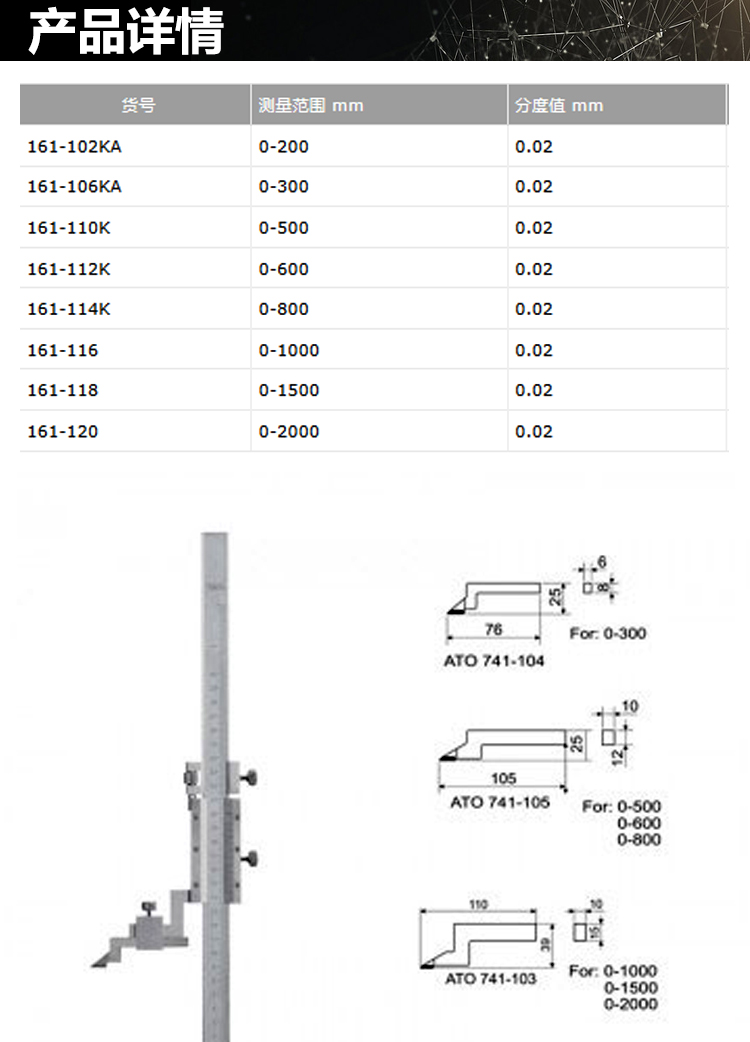 廣陸 開式游標高度尺