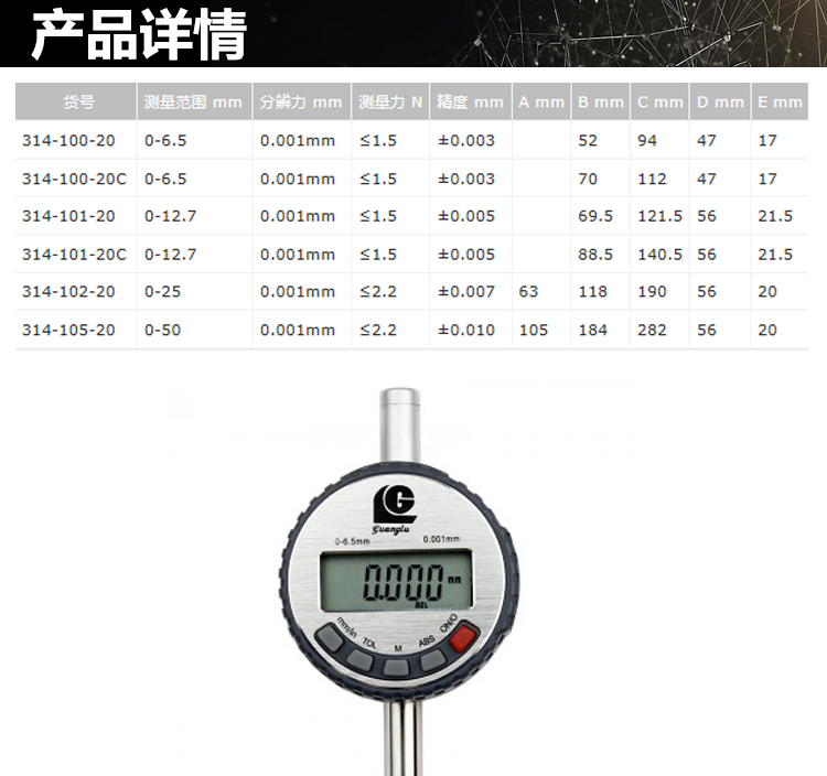 廣陸 數顯千分表(6.5mm)