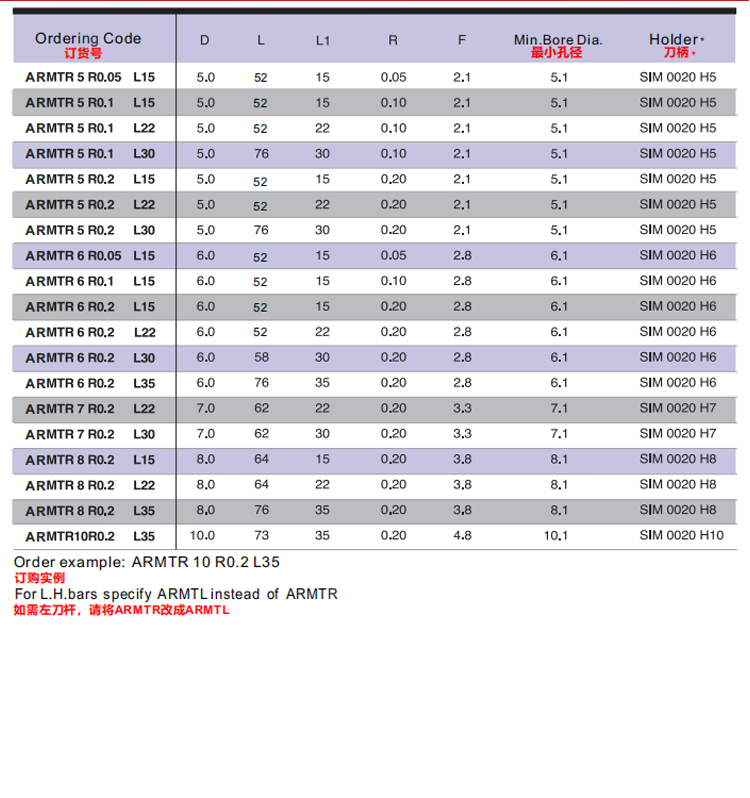 商品型號 ARMTR 5 R0.05 L15
