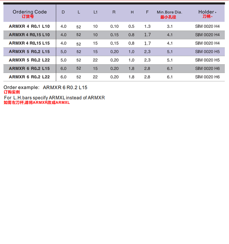 艾瑞德鏜孔刀 微型鏜刀/倒拉鏜削/車削內圓 帶內冷孔ARMXR系列