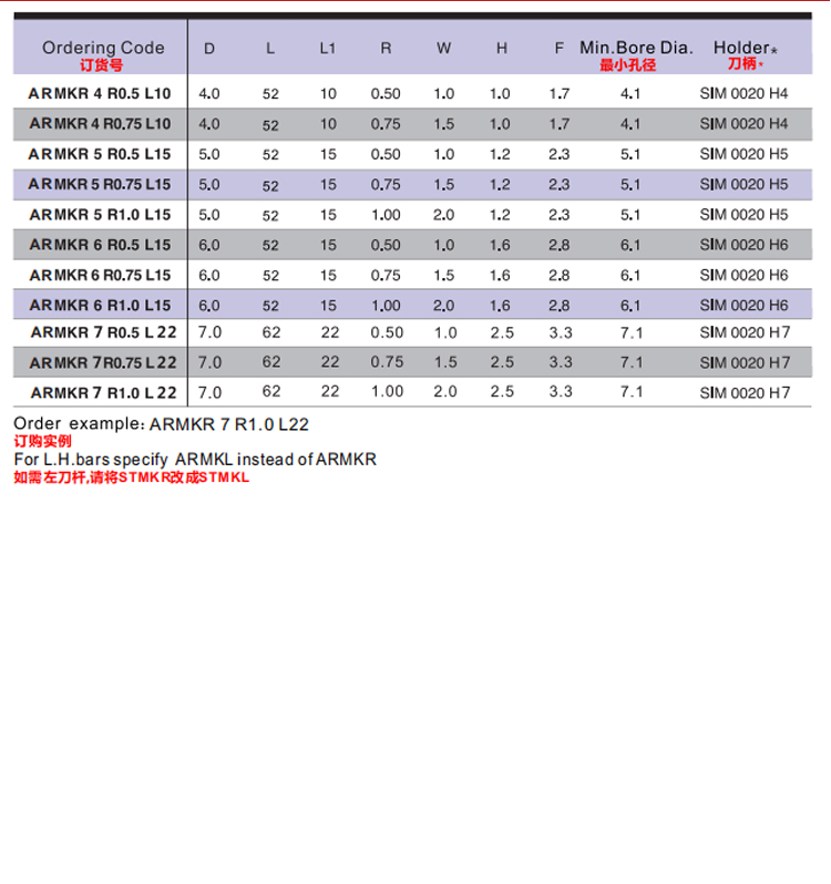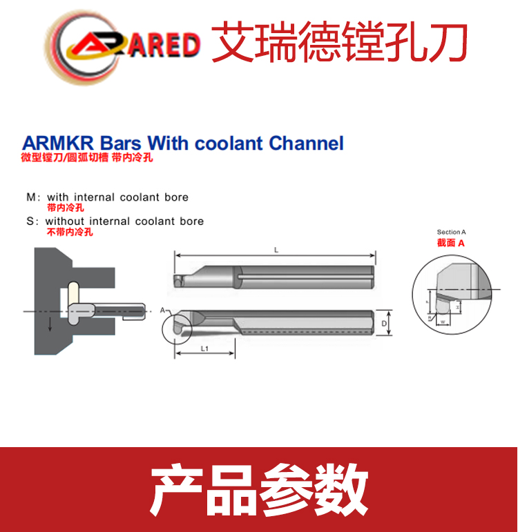 艾瑞德鏜孔刀 微型鏜刀/圓弧切槽 帶內冷孔 ARMKR系列