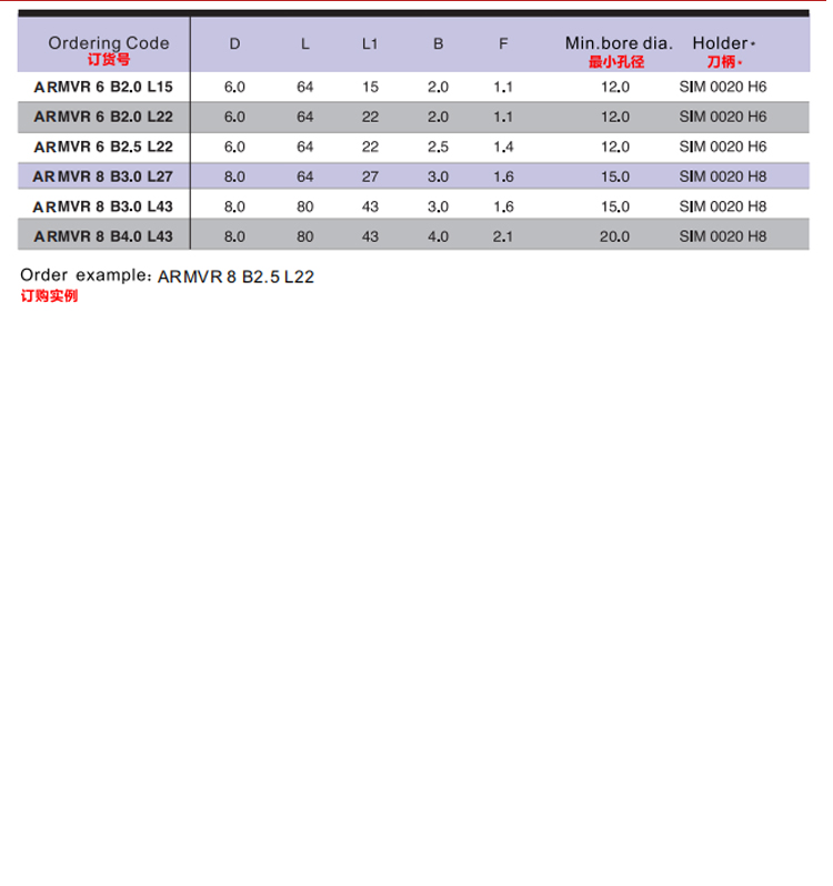 艾瑞德鏜孔刀 微型鏜刀/端面切槽 帶兩個內冷孔 ARMVR系列