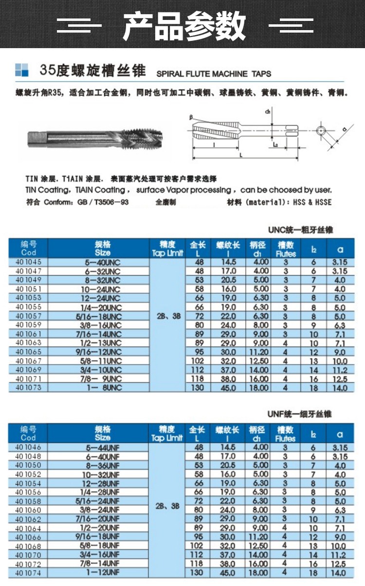 陜西宏峰35°螺旋絲錐UNF統一細牙絲錐