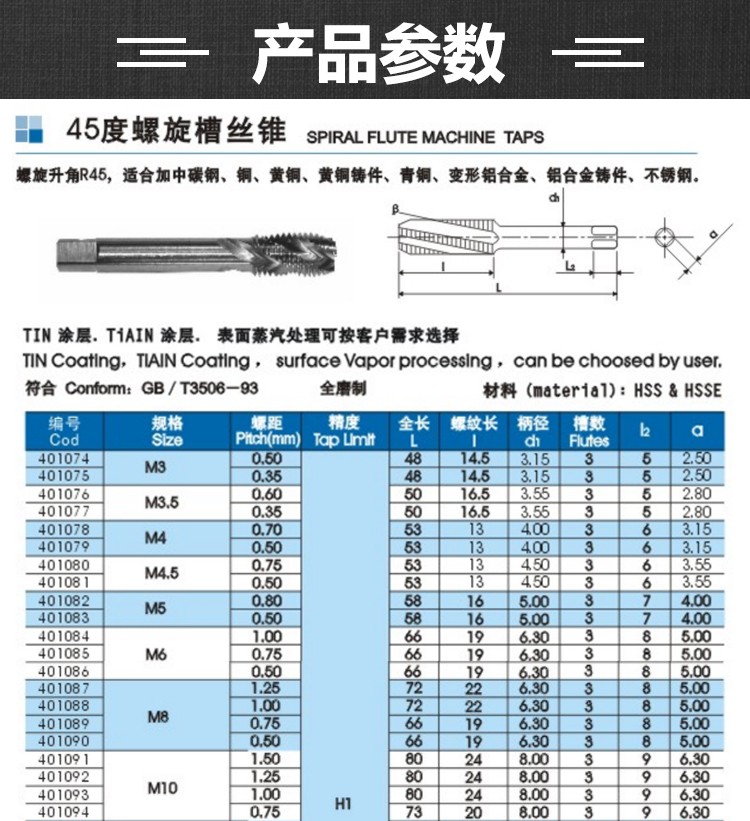 陜西宏峰45度螺旋槽絲錐M12-M24