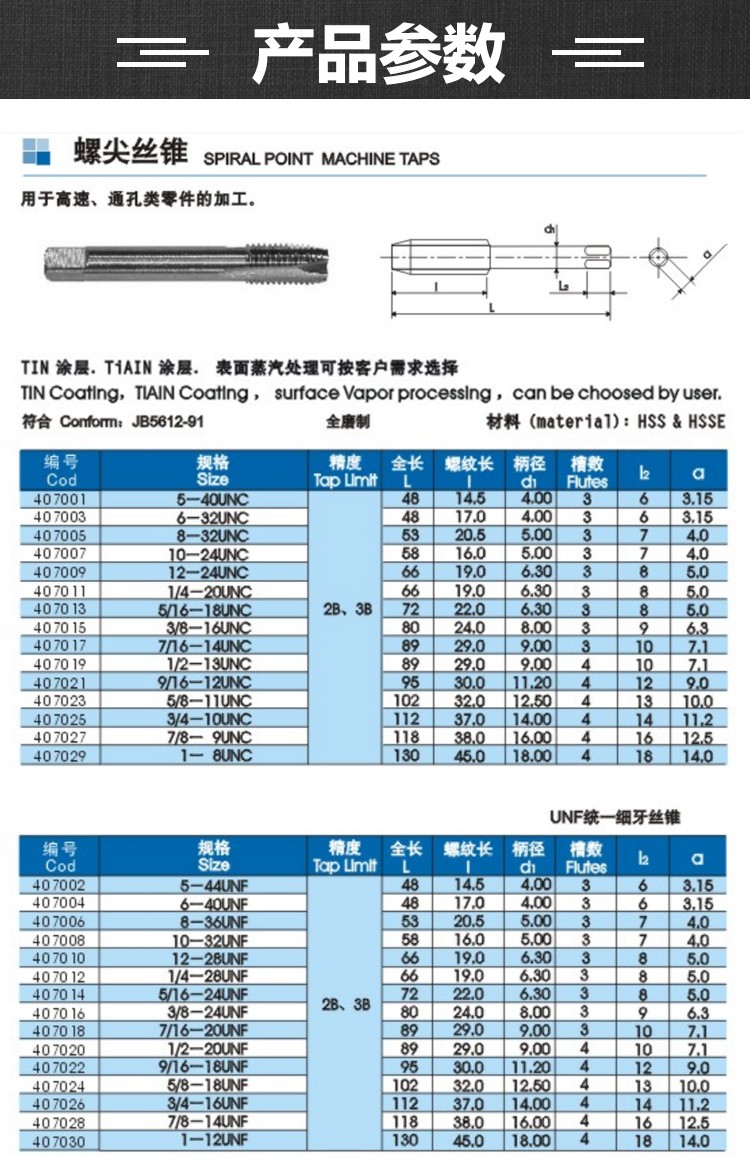 陜西宏峰螺尖絲錐UNC統一粗牙絲錐