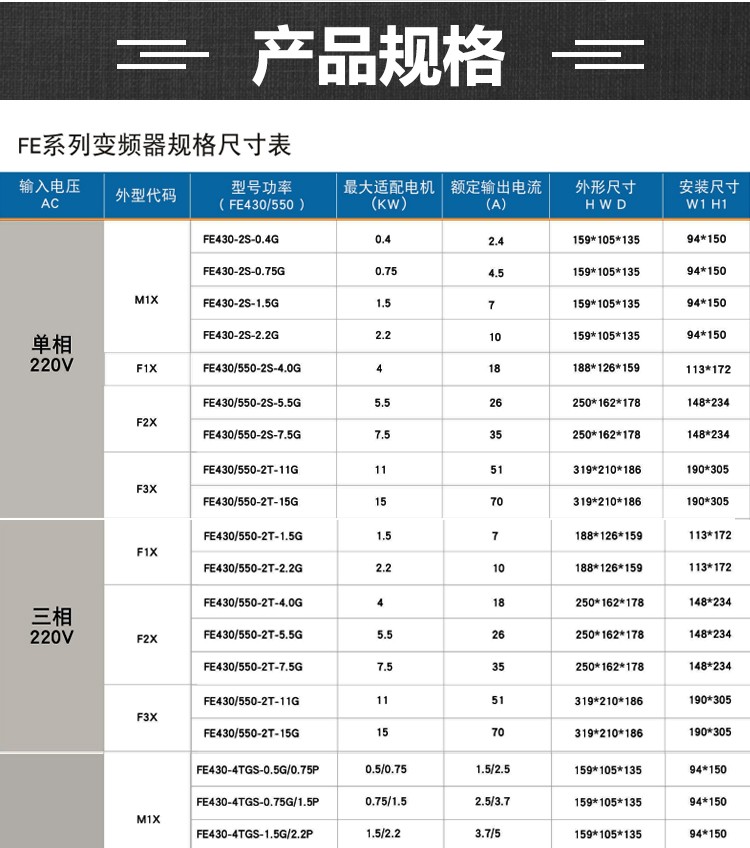 偉森變頻器FE系列單相 220V 0.4KW/0.75KW/1.5KW/2.2KW/4KW/5.5KW/7.5KW/11KW/15KW