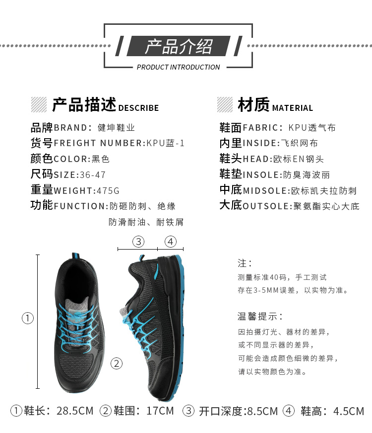 商品型號 健坤安全鞋KPU藍