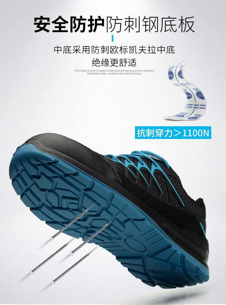 健坤安全鞋KPU藍 防砸防刺、防滑耐油、耐鐵屑