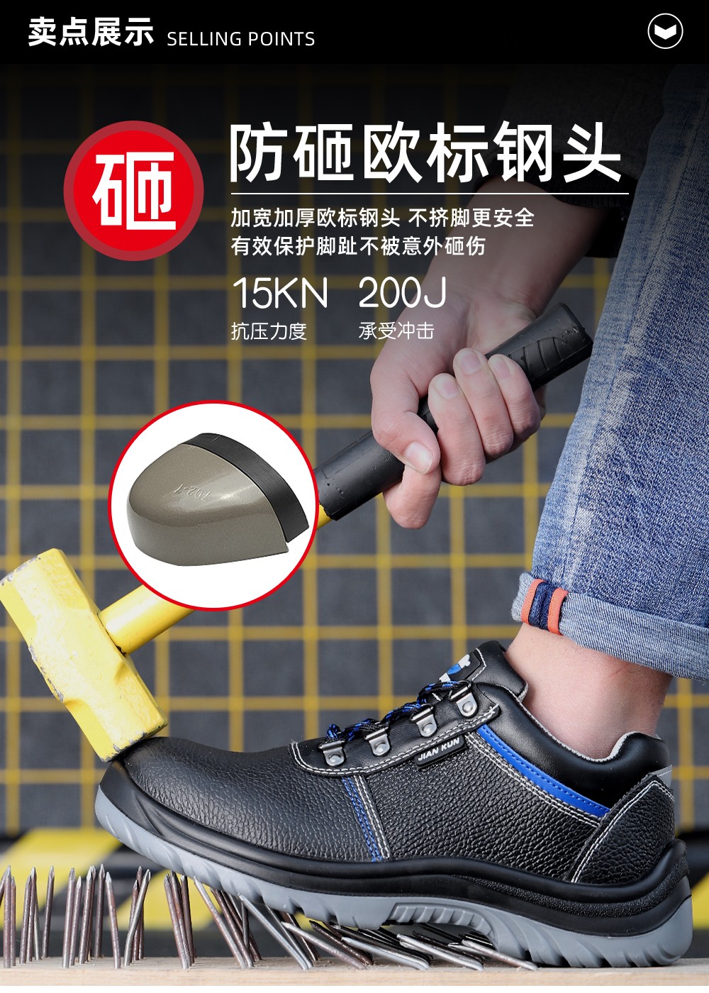 健坤安全鞋6522DSM 防砸、防刺、防滑耐磨