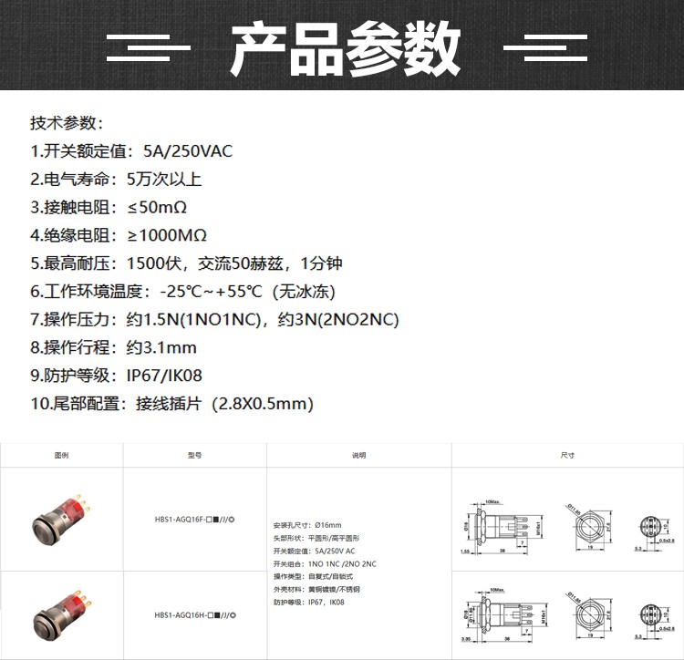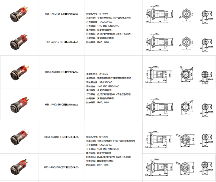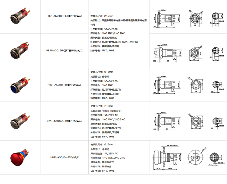 紅波按鈕金屬按鈕開關(guān)——HBS1-AGQ系列 ?16mm