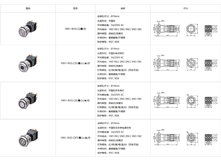 紅波按鈕金屬按鈕開關——HBS1-BGQ系列 ?19mm