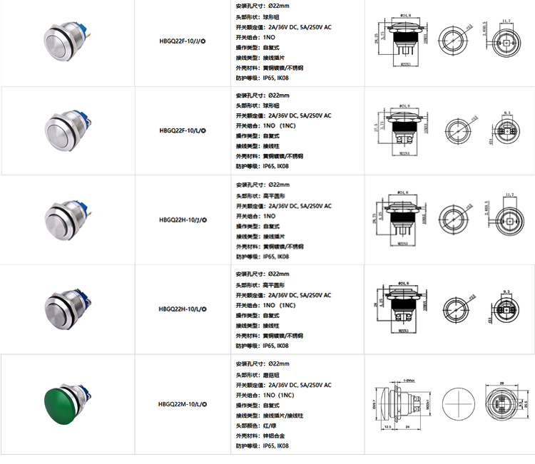 紅波按鈕金屬按鈕開關——HBGQ系列 ?22mm