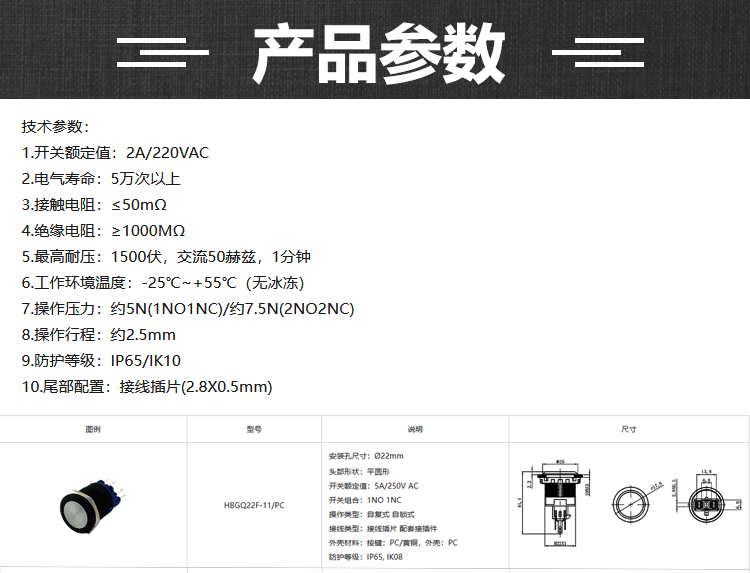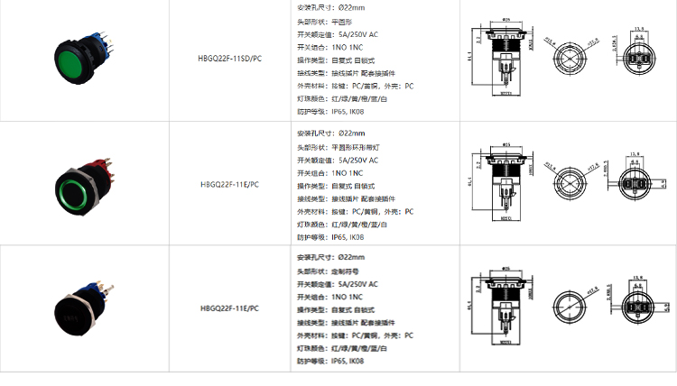 紅波按鈕塑料按鈕開關——HBGQ系列 ?22mm
