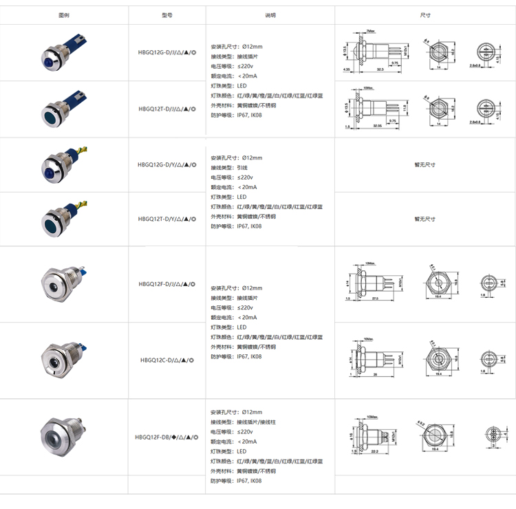 商品型號 HBGQ12G-D/J/△/▲/◎