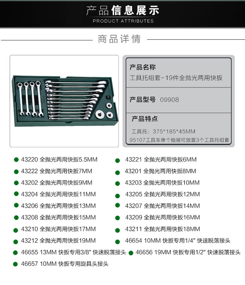 名稱(chēng):工具托組套 品牌:Sata/世達(dá) 材質(zhì):鉻釩鋼 產(chǎn)地:中國(guó)