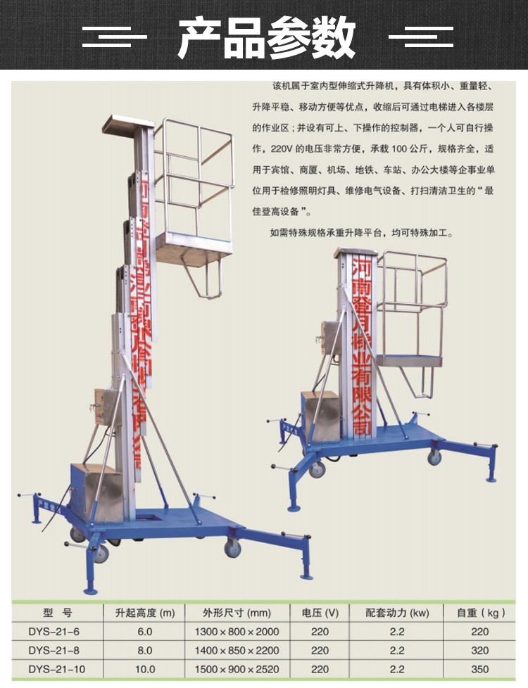 鋁合金單柱升降機電動液壓高空作業車云梯支架移動式升降平臺