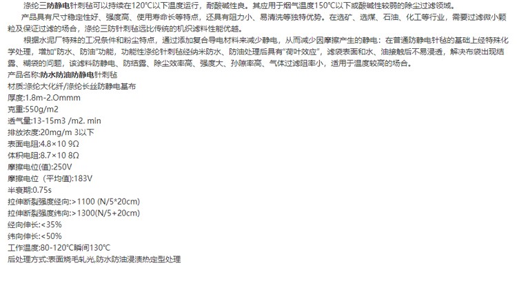 東大濾料防水防油防靜電550克濾袋