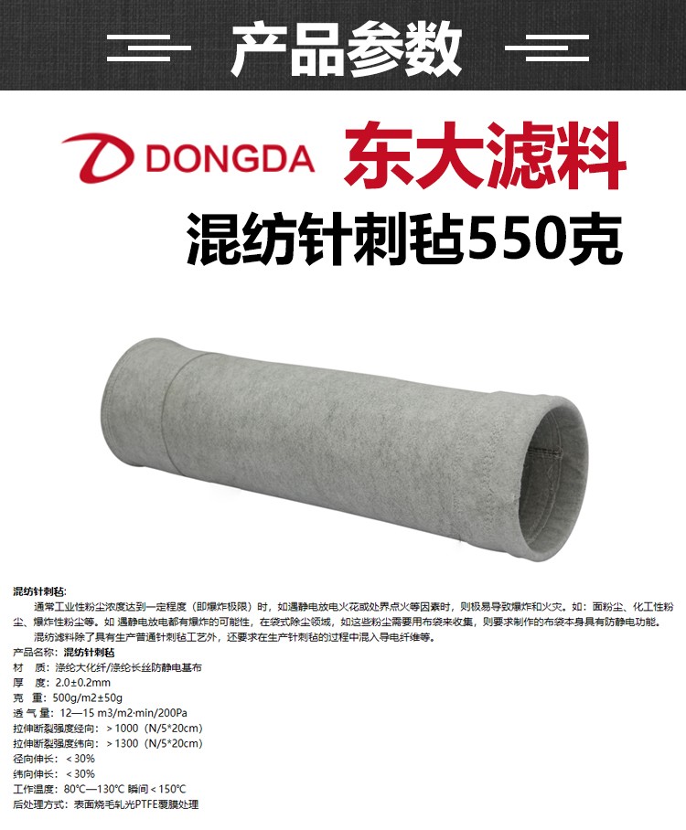 東大濾料 混紡針刺氈550克濾袋