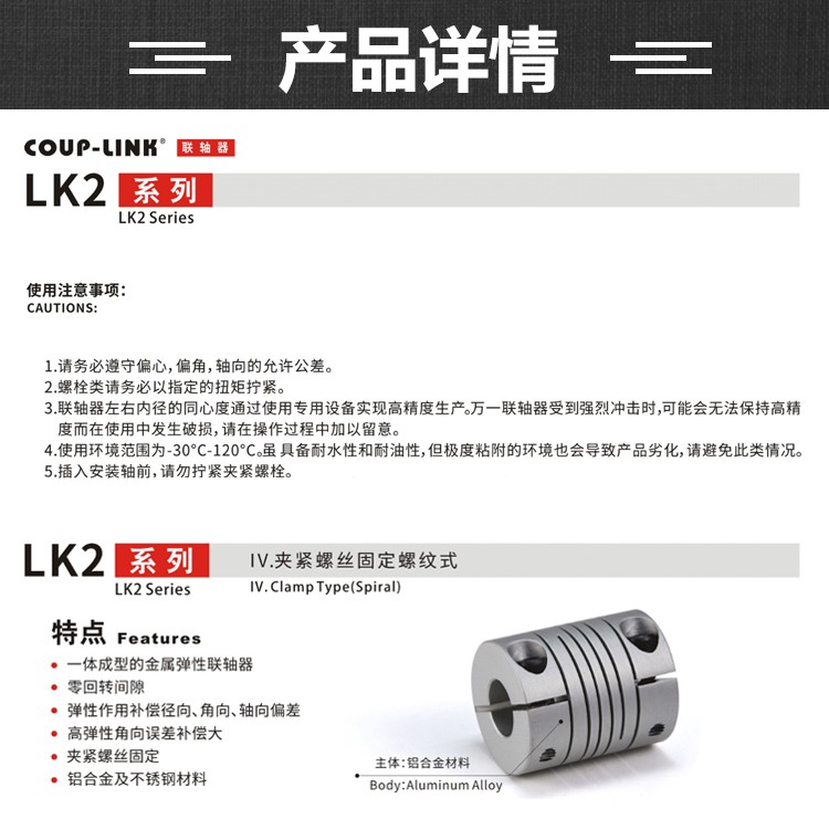 廣州菱科FA自動化配件 LK2系列 夾緊螺絲固定螺紋式 彈性聯軸器