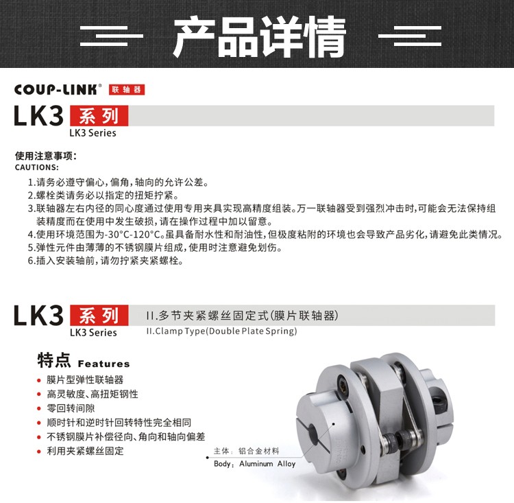 廣州菱科FA自動化配件 LK3 系列 膜片聯軸器 多節夾緊螺絲固定式