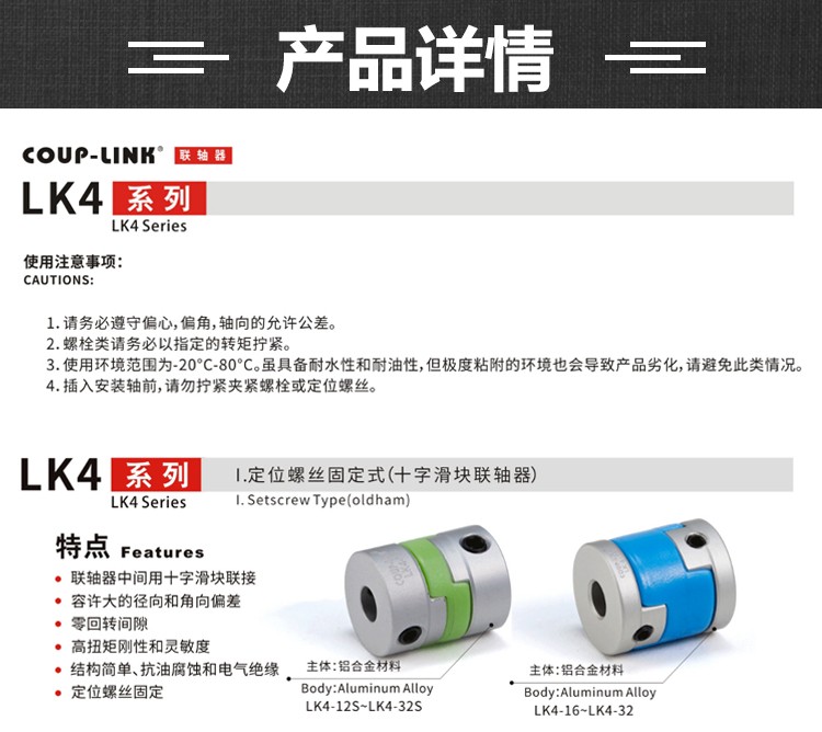 廣州菱科FA自動化配件 LK4 系列 十字滑塊聯軸器 夾緊螺絲固定式