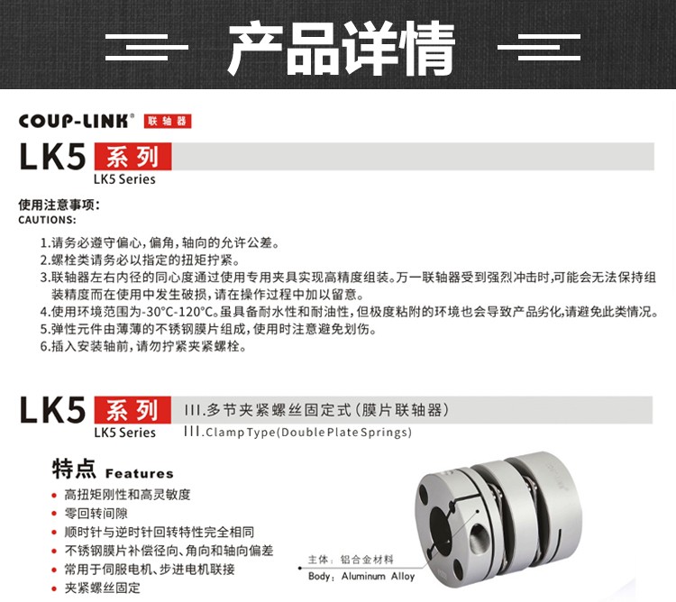 廣州菱科FA自動化配件 LK5 系列 膜片聯軸器 多節夾緊螺絲固定式