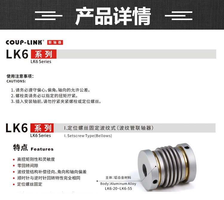 廣州菱科FA自動化配件 LK6 系列 波紋管聯軸器 夾緊螺絲固定波紋式