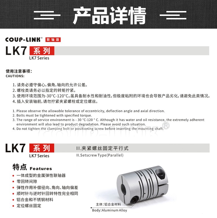 廣州菱科FA自動化配件 LK7 系列 彈性聯軸器 夾緊螺絲固定平行式