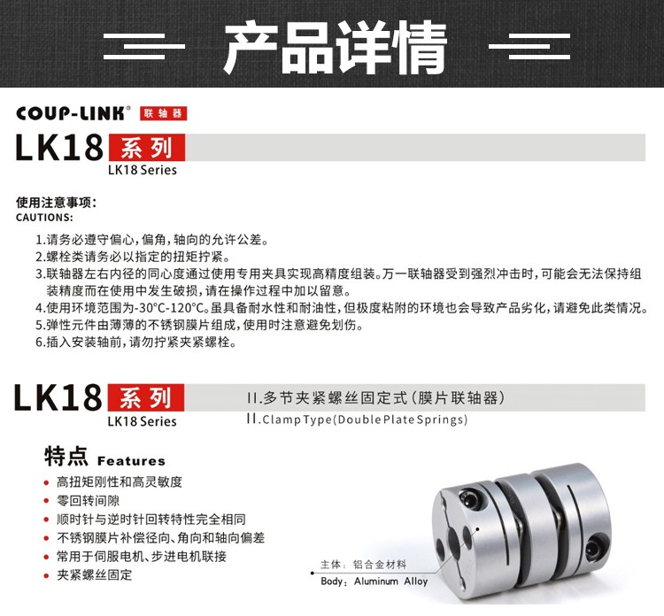 廣州菱科FA自動化配件 LK18 系列 經濟型膜片聯軸器 多節夾緊螺絲固定式