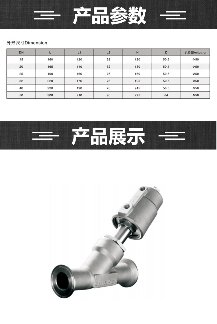 商品型號 快裝式氣動角座閥