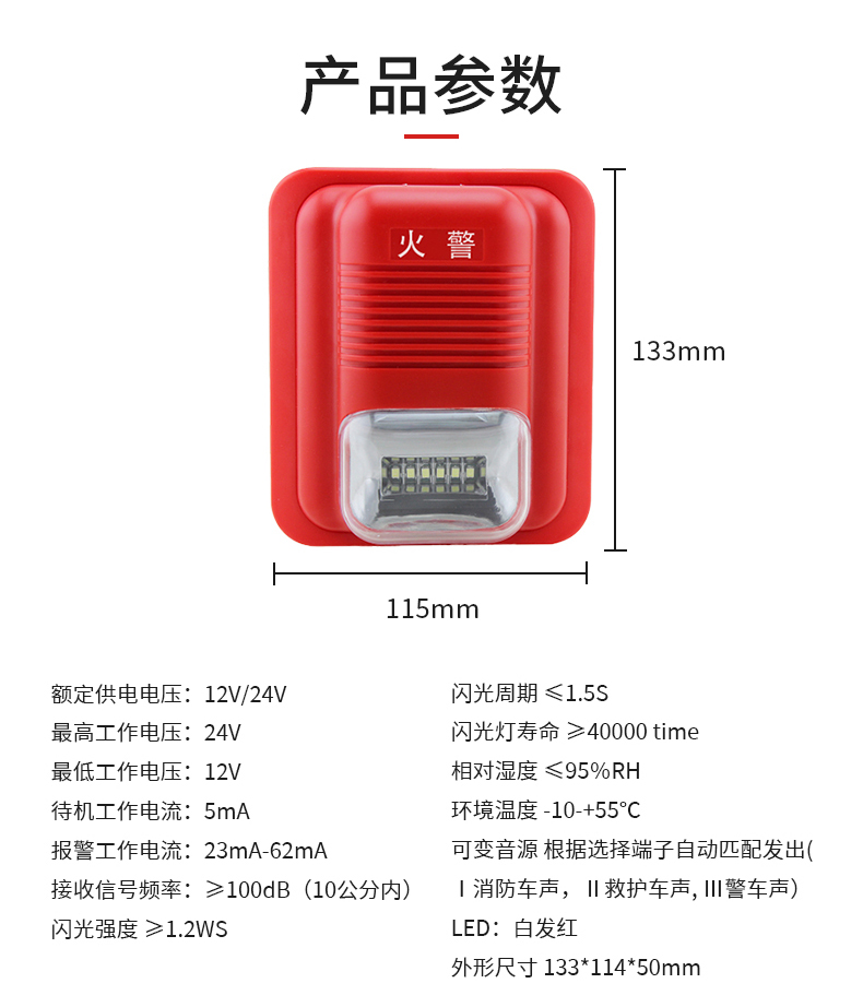 朗鑫消防火災產品消防警號系列白發紅LED式獨立式消防聲光警號LS-104-1-Y-E2S3-D
