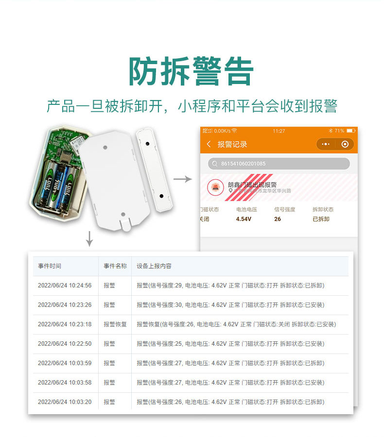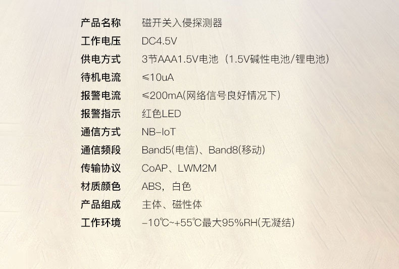 朗鑫智慧消防&家居產品NB-IOT 聲光報警式 智能磁開關入侵探測器LS-323-6-F6HYZ-A-M-B3-V1