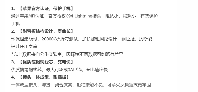 公牛數碼精品Type C-Lightning蘋果數據線 JCL103B