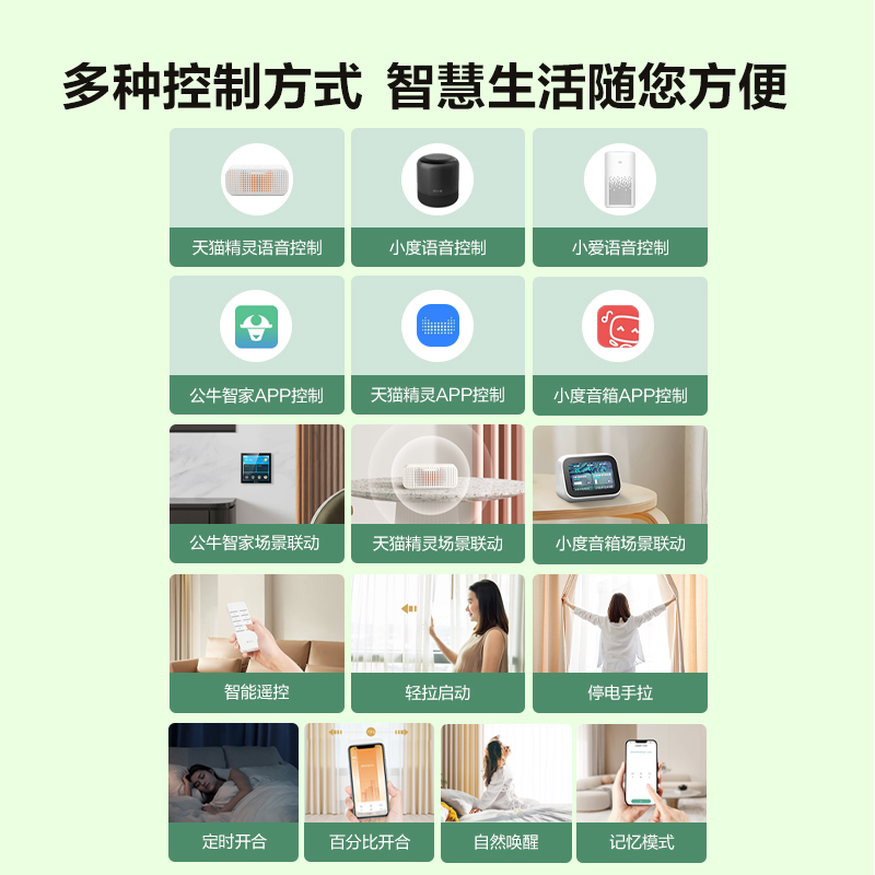 公牛生活電器智能窗簾多語音一字伸縮軌窗簾 GDC035C